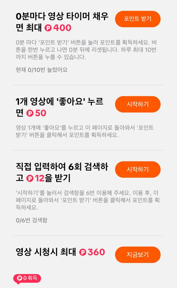 또한 여러 미션이 있어 틱톡라이트의 사용 법도 익힐 겸 포인트도 얻을 수 있는 다양한 미션들이 존재합니다.